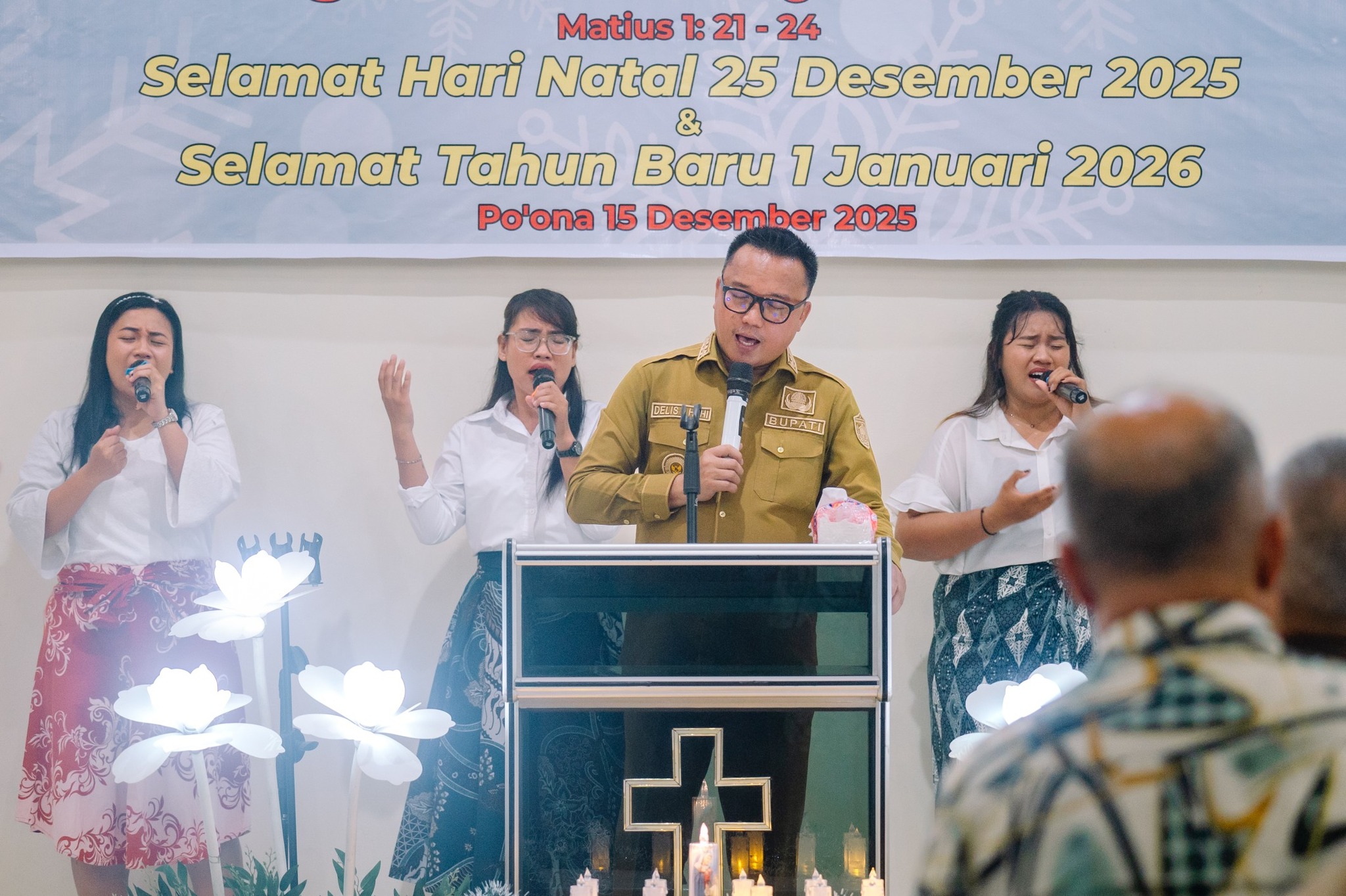 Sementara itu, Ketua TP PKK Morut yang juga Anggota DPD RI, Febriyanthi Hongkiriwang, turut menyampaikan pesan Natal yang mengajak seluruh jemaat untuk merenungkan makna Natal sebagai peristiwa yang membawa kebahagiaan dan pengharapan.