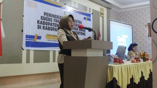 Mout- Bupati Morowali Utara Delis Julkarson Hehi didampingi oleh Ketua TP-PKK Morut sekaligus anggota DPD RI Sulteng Ny. Febriyanthi H.D.J. Hehi