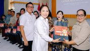 Mout- Bupati Morowali Utara Delis Julkarson Hehi didampingi oleh Ketua TP-PKK Morut sekaligus anggota DPD RI Sulteng Ny. Febriyanthi H.D.J. Hehi
