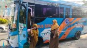 Palu- warga Kota Palu bekerja di Kabupaten Donggala, Sulawesi Tengah disediakan bus antar-jemput oleh Pemerintah Kota (Pemkot) setempat.